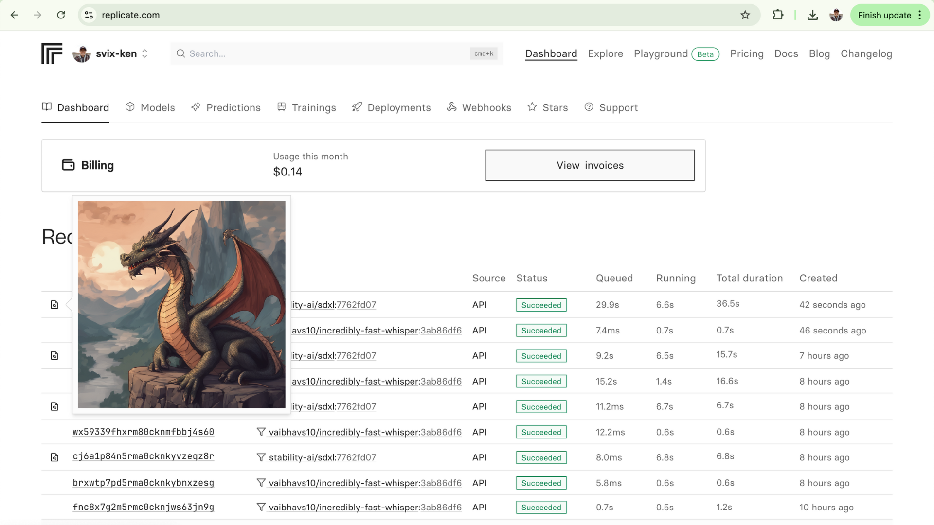 With this setup, you should be able to see the generated images in the Replicate dashboard: