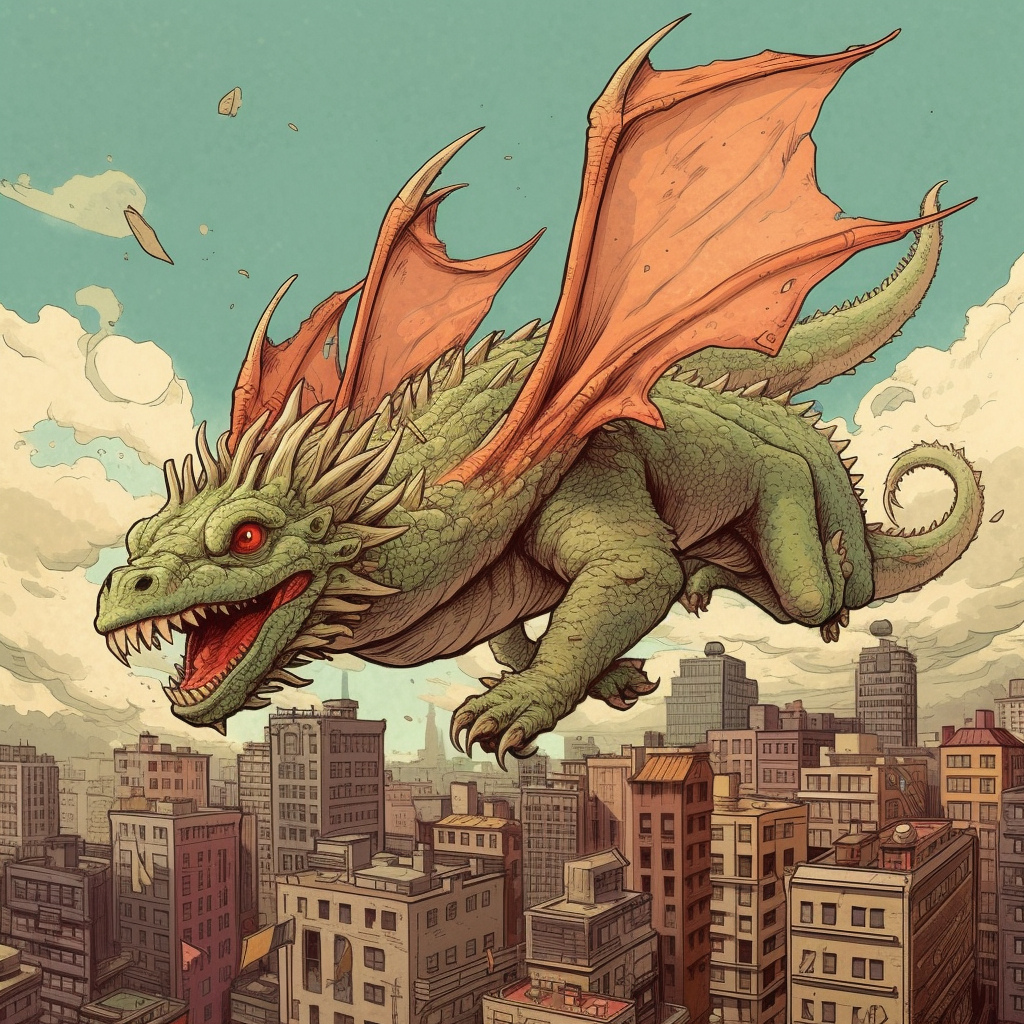 Prompt: "A dragon flying over New York City in the style of Ghibli Studios"